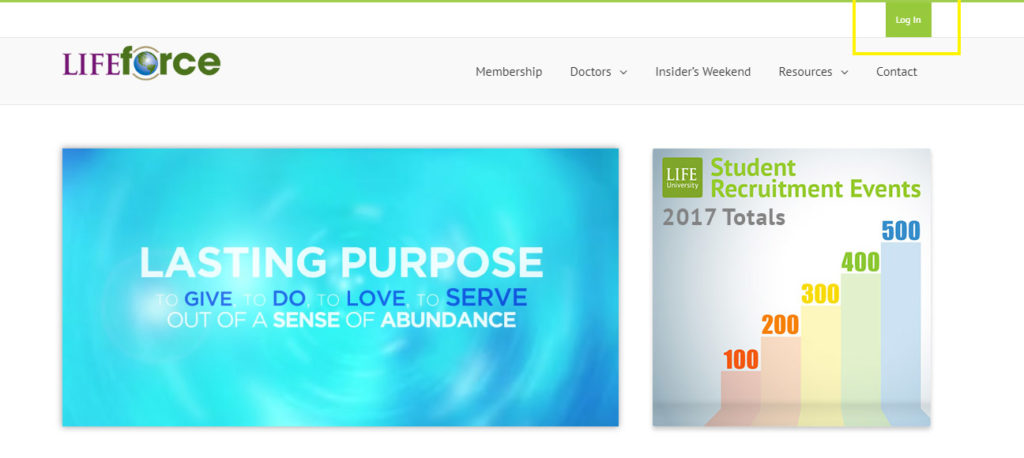 Go to the LIFEforce homepage – http://lifeforce.life.edu. Click the login button at the upper right of the window. See image above.