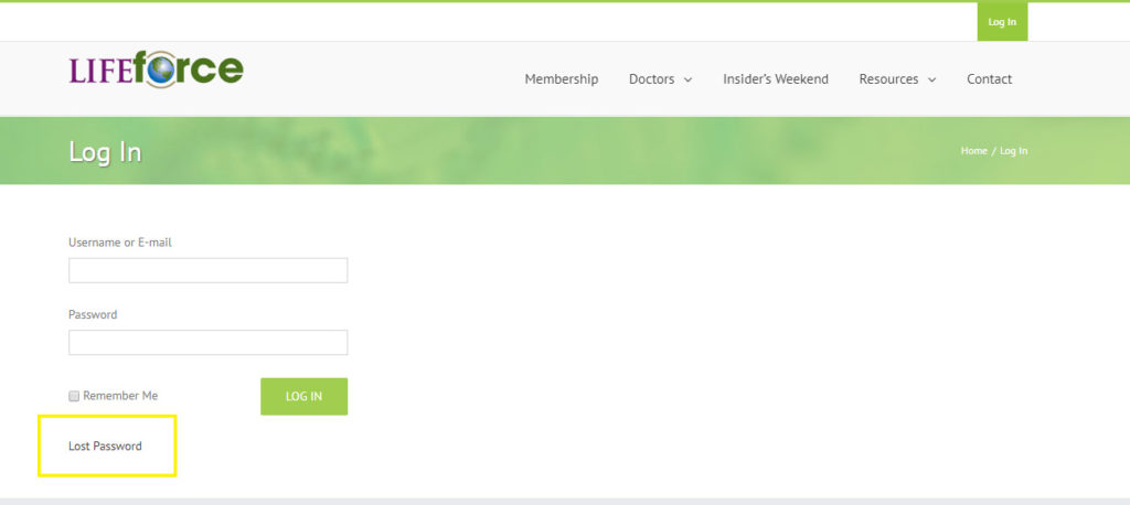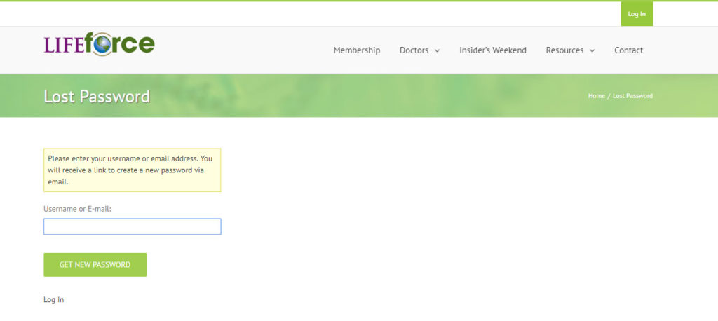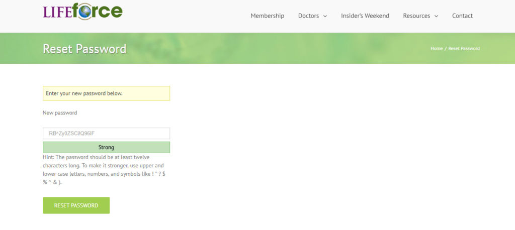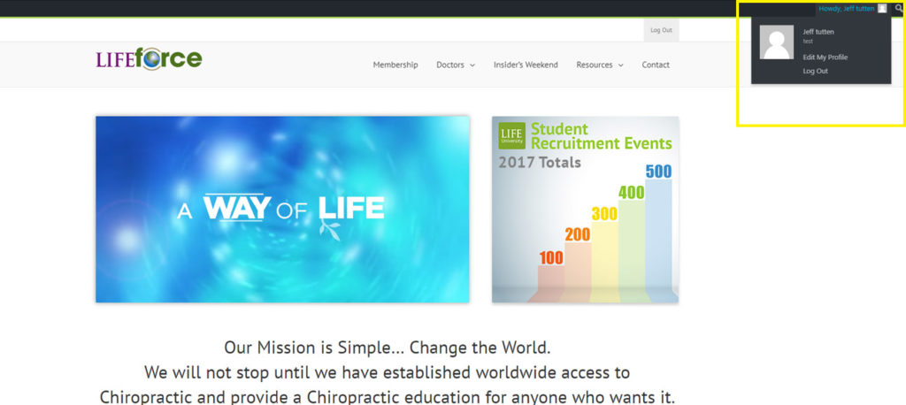 Return to the homepage http://lifeforce.life.edu, click the login button at the top right of the screen, and log in using your new password. See image above.